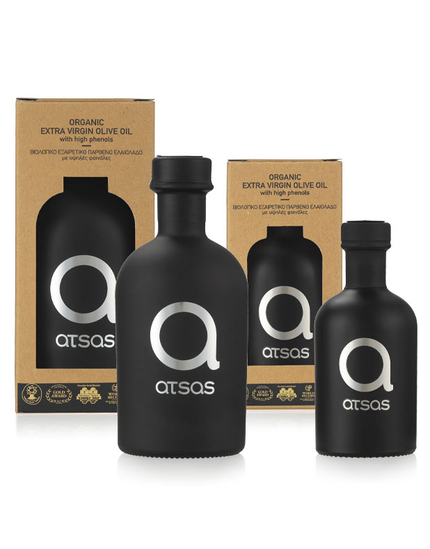 Atsas Silver Edition is een superieure monovarietal biologische extra vierge olijfolie, verkregen uit koudgeperste Koroneiki olijven. Het hoge gehalte aan polyfenolen in onze Silver Edition maakt het een waardevol voedingssupplement. Atsas Silver Edition heeft een speciale gezondheidsclaim gekregen voor zijn voedingswaarde.